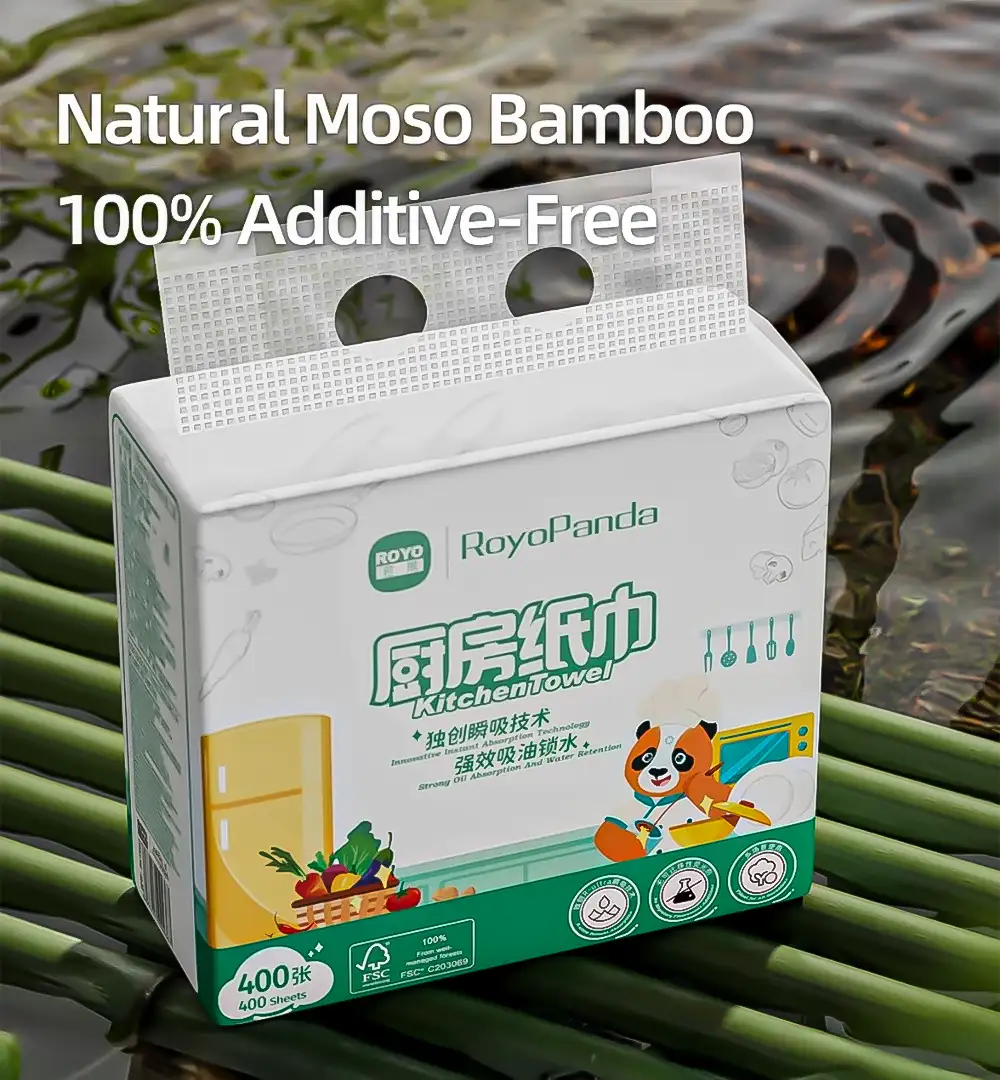 Upgrade your kitchen hygiene with RoyoPanda Hanging Kitchen Tissue Paper Towels. Designed for convenience and superior performance, these towels are crafted from 100% natural Moso bamboo, making them a sustainable choice that is completely additive-free and biodegradable.