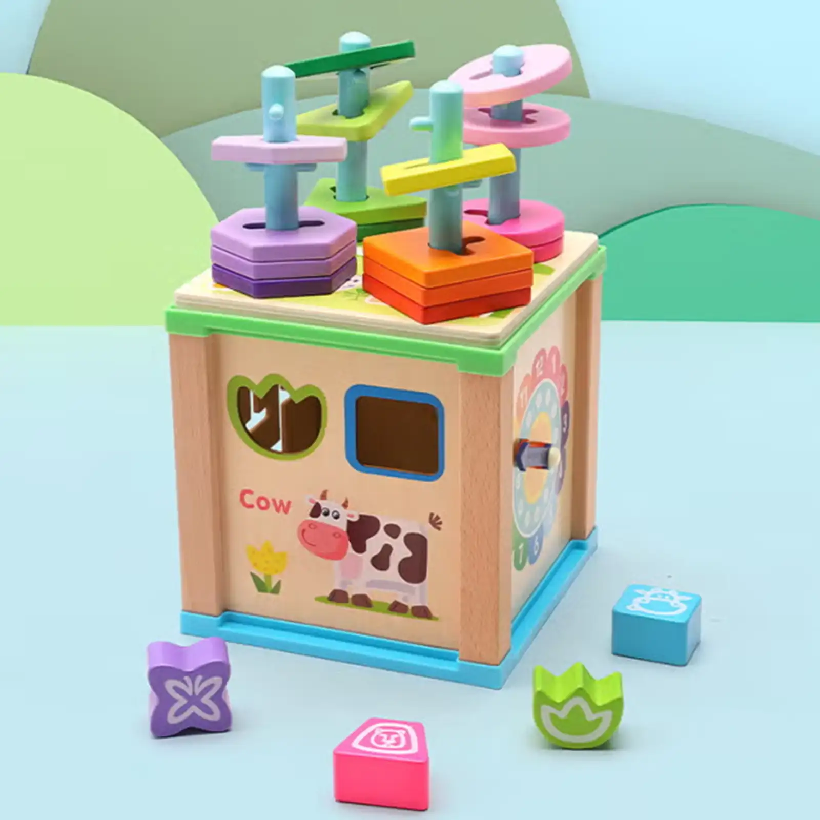 5-in-1 Montessori Wooden Activity Cube & Shape Sorter