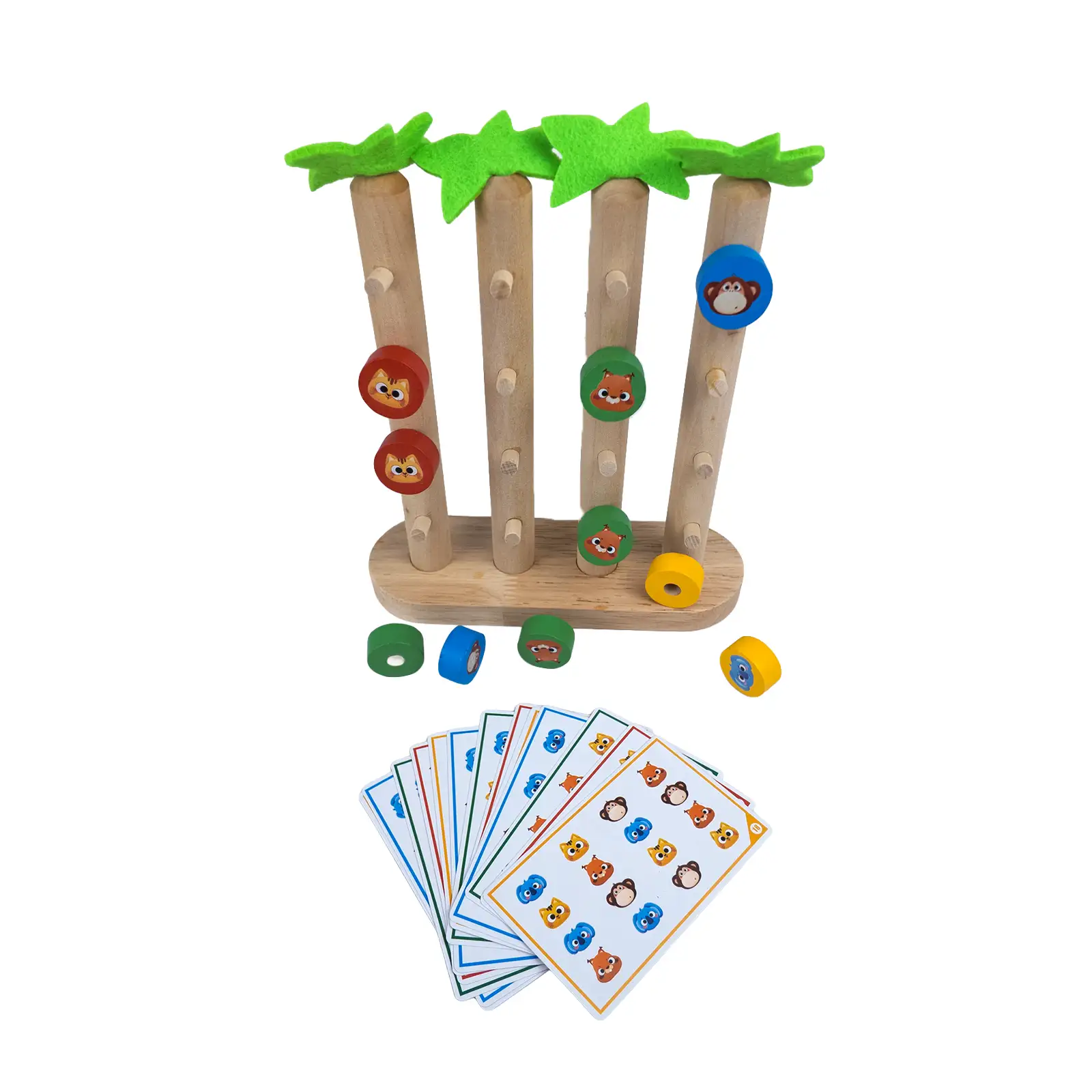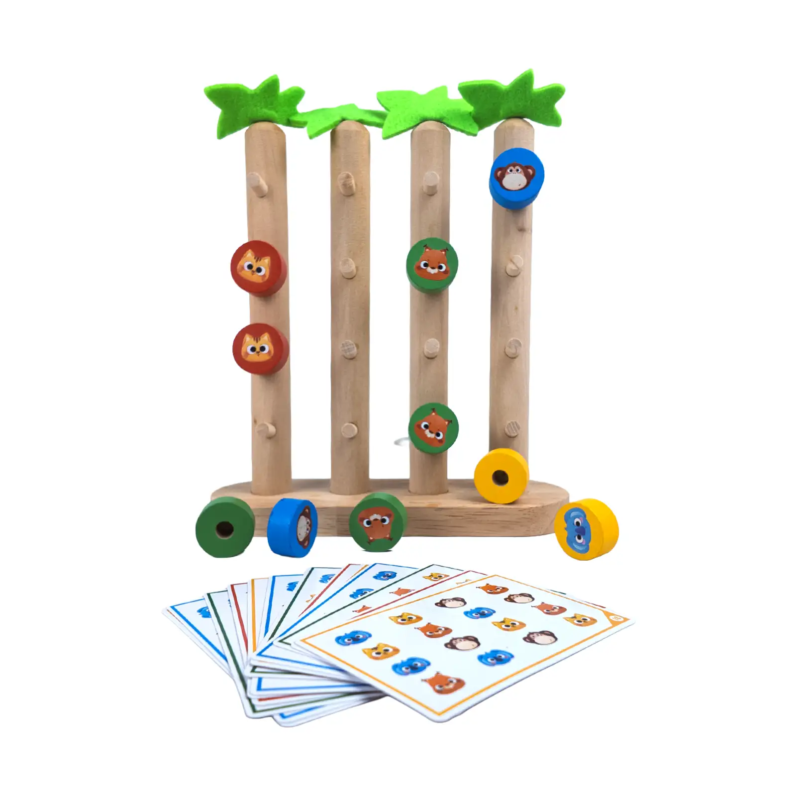 Bring the jungle to your playroom! This Animal Matching Game challenges little ones to replicate patterns using colorful animal beads on palm tree pillars. It’s the perfect blend of fun and cognitive development, designed to enhance color recognition, spatial logic, and fine motor precision.